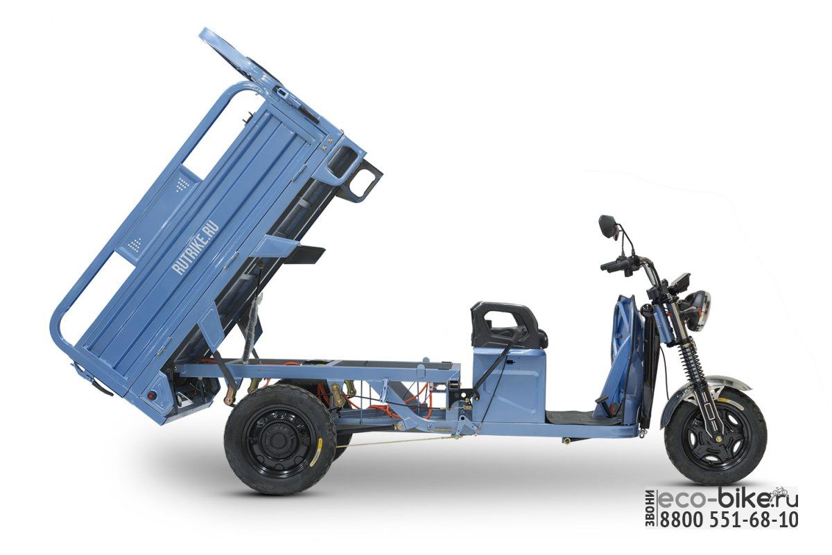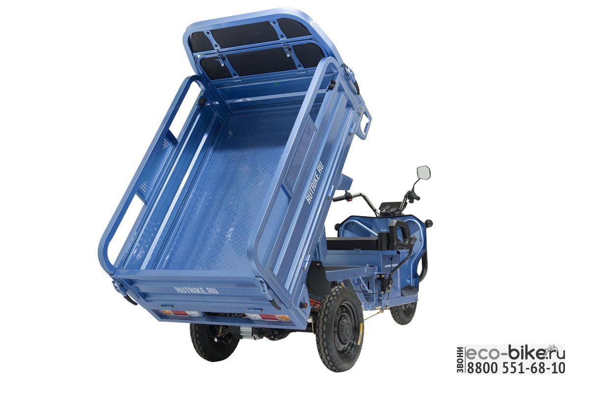 Трицикл оснащён прочным стальным грузовым отсеком габаритами 1500 x 1000 x 300 мм (Д х Ш х В).